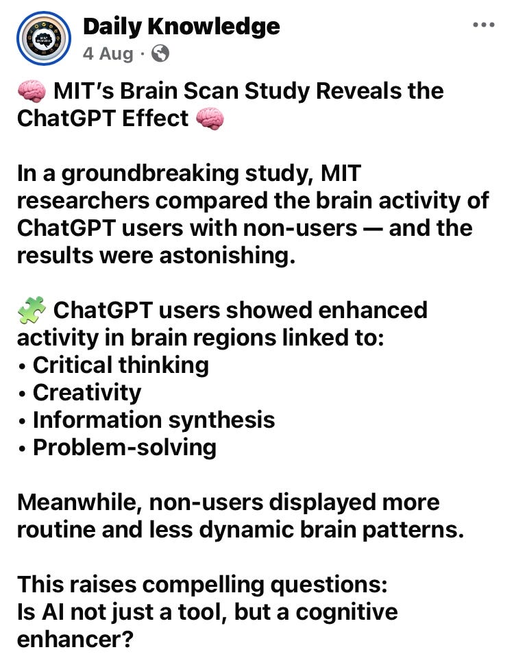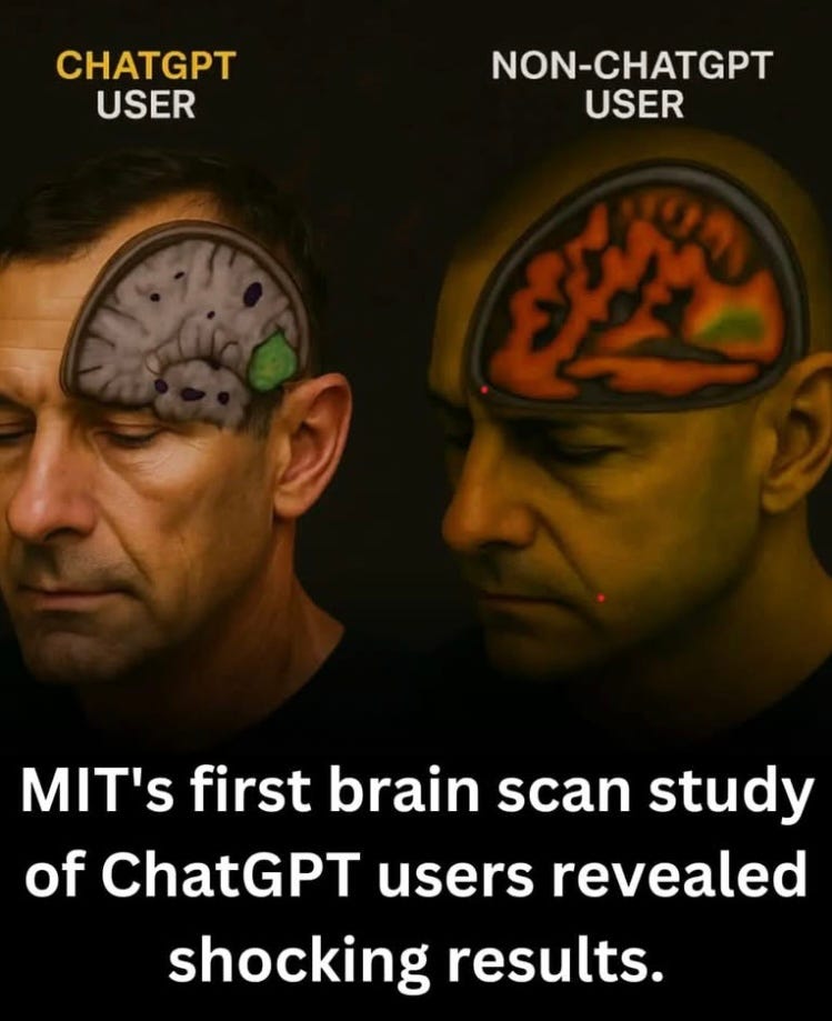 The MIT study (though it may be more speculative or playful than factual) suggests ChatGPT users show: